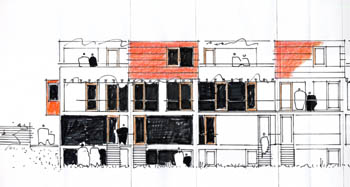 24I10I05 sanierungsgebiet petuelring münchen heute 18 uhr wird die ausstellung der MGS eröffnet. öffnungszeiten: dienstag bis freitag den 28.10.05 von 11 bis 18 uhr, samstag den 29.10.05 von 10 bis 15 uhr, ort: stadtteilladen K45, knorrstraße 45, 80807 münchen milbertshofen. bild unten: entwurf A2 und büro freiraum