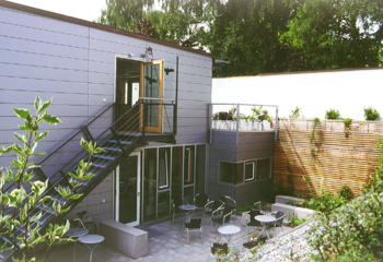 von A2architekten sind als Holzkuben angefügt. Die Dächer wurden