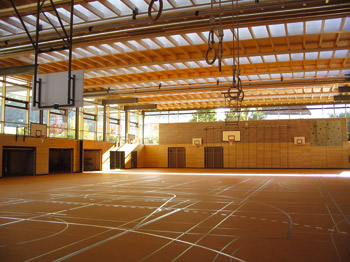 Nach einem Jahr Bauzeit ist die Dreifachturnhalle im Schulviertel